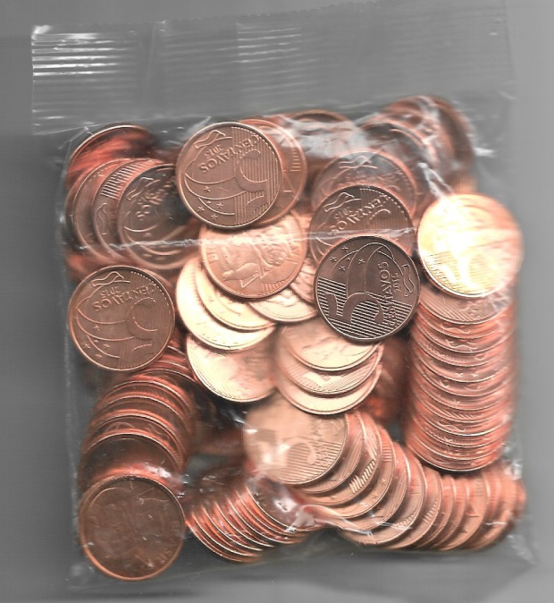 Sachê Original Banco Central Com 100 Moedas 2015 de R$ 0,05 Centavos de Real